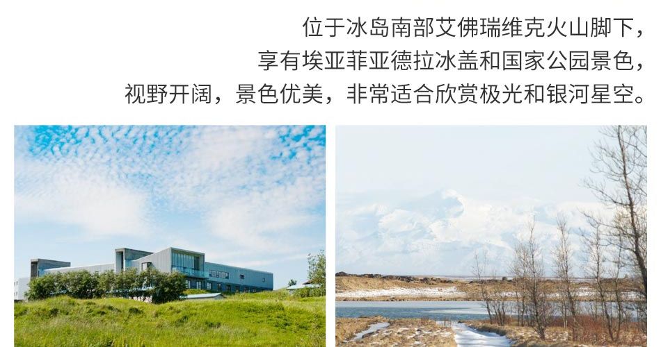 酒店位于冰岛南部著名的艾佛瑞维克火山脚下,享有埃亚菲亚德拉冰盖(Eyjafjallajökull)和基尔丘拜亚拉伊斯蒂(Kirkjubæjarklaustur)国家公园景色,酒店视野开阔,景色优美,远离杂光干扰,非常适合于欣赏极光和银河星空,环保材料建筑的现代化房间,非常具有设计感和独特的新航海时代建筑风格,为冰岛新晋的知名网红景观酒店。