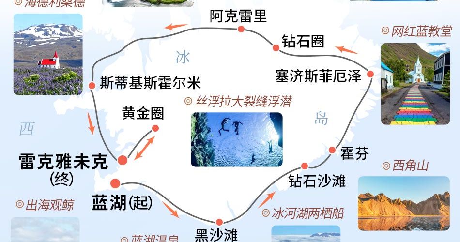 结束时间地点:最后一天晚上18:30左右在雷克雅未克市中心酒店门口结束。