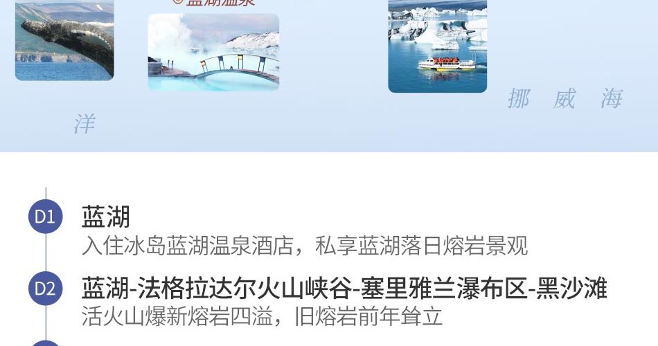 3、如遇冰岛极端天气,出海项目可能会取消,可选择退款或换时间体验;观鲸有一定的随机性,如天气情况适合出海但实际行程中未观测到鲸鱼,则视为该行程已产生,费用不可退。