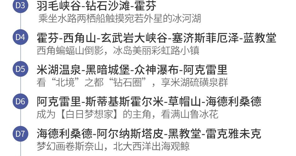 最后一天会途径凯夫拉维克机场,返回雷克雅未克市区。可选择机场上/下团,机场上下团时间为周六16:50。