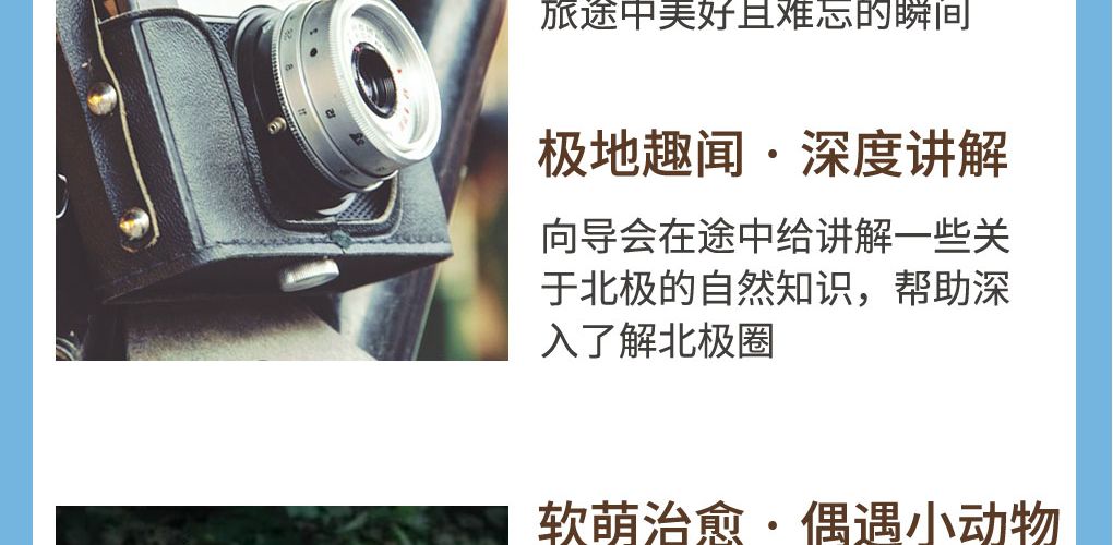 沿着5公里的栈道,尽享徒步带来的身心放松与悠然自得;向导会在途中给您讲解一些关于北极自然的知识,幸运的话,还可以偶遇可爱的野生动物;专业的摄影向导会帮您捕捉这些美好且难忘的瞬间!