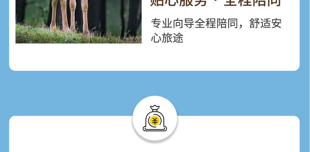 4、部分团期的行程设计游览的先后次序有所调整,但游览内容一致,不影响全程体验,视为行程与行程单一致、如行程单前后循序与出团通知书的内容有冲突、请与出团通知书为准。如出团通知书与导游现场通知的内容有冲突,请以导游现场通知为准。
