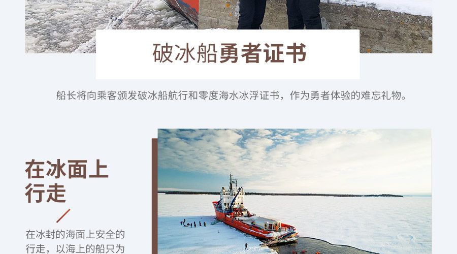 波罗地海湾的破冰船一年只有2个月有固定的船期,往往供不应求,每一张船票都是弥足珍贵的,如果错过了,是没有办法再更改时间的,希望可以提前到码头集合,避免错过活动。