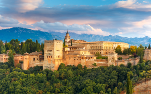 阿尔罕布拉宫是西班牙摩尔人最后的宫殿,坐落在格拉纳达市中心以东的山上,宫殿雅致又华丽,是伊比利亚半岛最后的穆斯林王朝——纳斯瑞德王朝的皇宫。阿尔罕布拉宫直译为“红宫”“红色城堡”,其作为伊斯兰教世俗建筑与造园技艺完美结合的建筑名作以及阿拉伯式宫殿庭院建筑的优秀代表,1984年阿尔罕布拉宫被选入联合国教科文组织世界文化遗产名录之中。