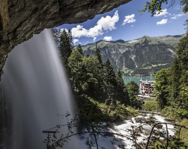 巴赫音乐学院酒店有山有水有瀑布有湖畔有河流有火车有渡船有徒步有网红餐厅有雪山有悬崖,一个酒店能拍出来整个瑞士的风景。