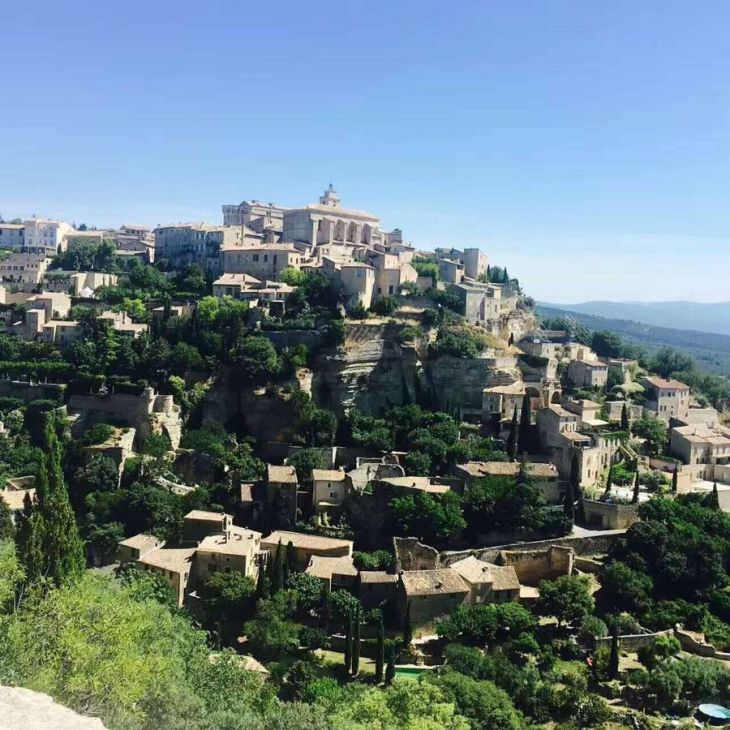 在吕贝隆山区对面的山谷里,有一座依山而建的古城,石壁、房屋、山坡、城堡,映衬着蓝天白云,这就是普罗旺斯地区非常有名的旅游胜地——勾禾德,也有译作“高德”。这座山丘古城曾经吸引了许多艺术家在此停留,山顶上16世纪的高德城堡卓然矗立,里面收藏了许多艺术家的作品。法国的小镇,艺术气息无处不在,一个招牌,一个橱窗,都显得那么的精致。色彩绚丽的手工艺品和明信片吸引着孩子们的眼球,逛小店是件多么开心的事情啊。