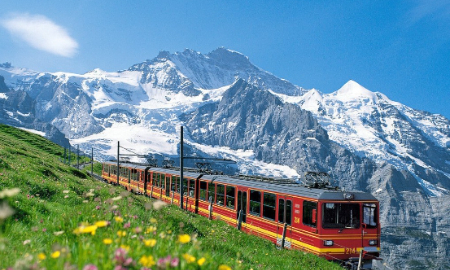 在英格堡的铁力士山谷车站,乘坐英格堡雪山景观列车,即可直达特吕布湖 和 Stand 站,沿途欣赏绿色的山景与成群的牛羊群,感受瑞士的田园乡村美景,随着高度的上升,沿途的地貌逐渐变化,从森林和草场到裸露的岩石和雪山,一路将英格堡的美景净收眼底。
