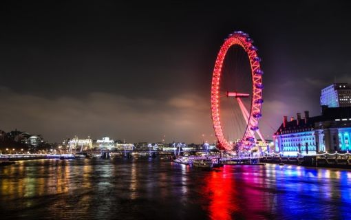 坐落在英国伦敦泰晤士河畔,是世界上首座、同时截至2005年最大的观景摩天轮,为伦敦的地标及出名旅游观光点之一。 “伦敦眼”为庆祝新千年而建造,因此又称"千禧摩天轮"。乘客可以乘坐"伦敦眼"升上半空,鸟瞰伦敦。“伦敦眼”在夜间则化成了一个巨大的蓝色光环,大大增添了泰晤士河的梦幻气质。