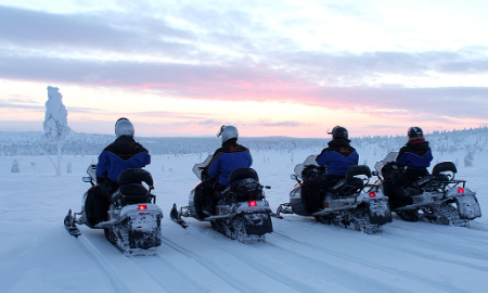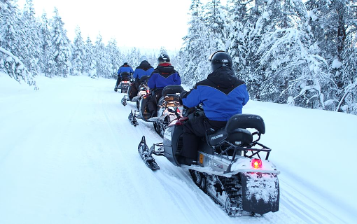 10:15 雪地摩托体验活动,双人轮流驾驶(不可驾驶者则乘坐在雪地摩托后座或向导驾驶的雪地摩托拉着的雪橇里),如购买单人驾驶则全程独自驾驶。我们将前往三个雪山上行驶:Kaunispää、Palopää 和 Urupää。