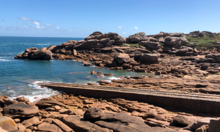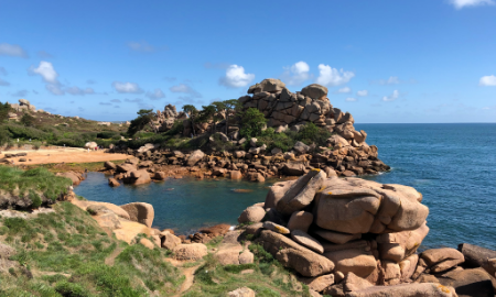 或者上午前往Ploumanach海滩徒步,下午徒步前往七岛巨石海滩(Plage du coz-pors)(往返大约2小时的路程),左右大岩石之间有蓝色的大海,海面波浪很小,沙滩非常美丽。