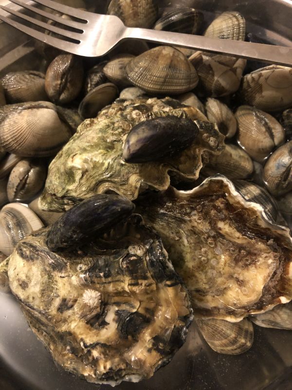 小镇上有两个养殖场,其实、不参观养殖场也挺好的。花同样的钱,吃得更舒坦,养殖场自己都有餐厅和卖场,长颈鹿选的那家只要是扇贝,可能是产季的原因,新鲜的能和人打架的扇贝卖3欧一公斤。不是一只,是一公斤,至少有7-8个扇贝。我们去的时候太冷了,就没烧烤,全部生吃……