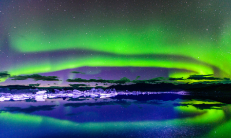 早餐过后,前往游览杰古沙龙冰河湖以及钻石沙滩,也可选择由专业向导带领体验冰川徒步,探索蓝冰洞。夜宿冰岛洛基酒店(Hotel Laki)或同等级酒店。