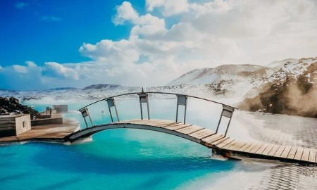 世界顶级疗养胜地,地球上地下岩浆活动最为频繁的区域之一。蓝湖位于冰岛西南部雷克雅尼斯半岛的格林达维克,距雷市39公里。《国家地理》将蓝湖评选为世界25大奇迹之一。水中溶解的矿物质、蓝绿海藻与一种细菌的混合,而这种细菌则只在蓝湖存在,温泉水中还含有一些其他溶解矿物质,其中包括氯化物和钙,以及一些硫、碳酸盐和镁,使其对身体有益。