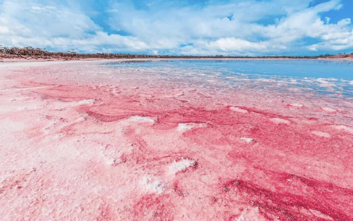 粉红湖的首页图片是P的,真实没有这么好看,在手机上往后翻,后面的图片是真实的。