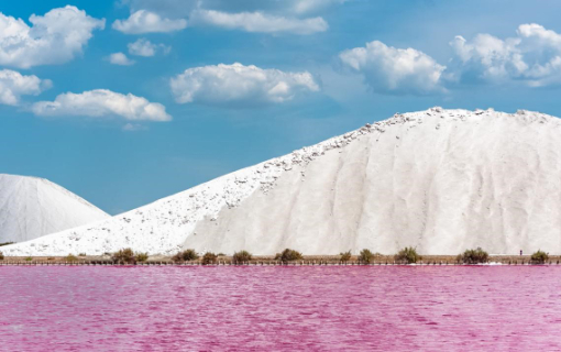 登上粉红盐湖的观光小火车,在艾格莫尔盐湖的中心地区进行一个多小时的游览。粉红的湖水与岸边雪白的石英沙滩相交融,如同草莓雪糕。长期光照和高含盐量湖水,令湖中产生大量丰富的β-胡萝卜素的杜氏盐藻,使得盐湖表面呈现粉红色,