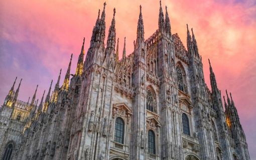 虽然它的名字Duomo是“圆顶”的意思,米兰大教堂实际上却是一座哥特式建筑。雄踞在市中心的米兰大教堂始建于1386年,历经500年才完工,被誉为意大利最壮丽的哥特式建筑数以百计的尖塔耸入云霄,白色大理石外墙上雕刻着数千座雕像。内部空间宽广,阳光透过窗上美丽的彩色玻璃镶嵌画射入,光线朦胧,充满庄严的宗教气氛。教堂地下室中还保留着原址上的圣·特库拉教堂的遗迹。