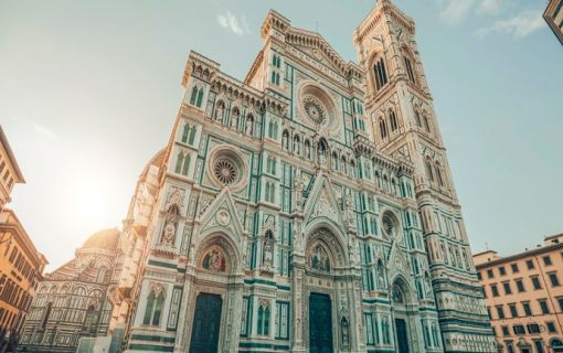 是天主教佛罗伦萨总教区的主教堂,也是市内最高的建筑,登上教堂的463级台阶可俯瞰佛罗伦萨的全景。是世界五大教堂之一,曾被评为世界最美教堂。诗人徐志摩把它译作“翡冷翠”。是整个文艺复兴初期的代表性建筑。红、绿、白外观装饰精美。建筑群由主教堂、钟楼和洗礼堂构成。