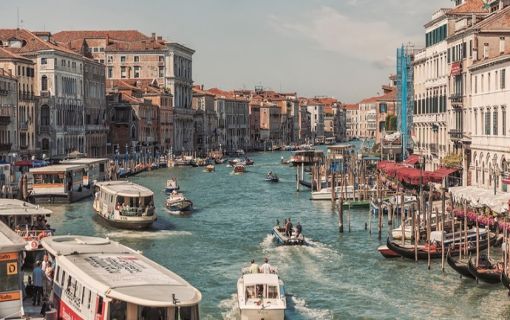 威尼斯大运河是意大利威尼斯市主要水道,沿天然水道自圣马可教堂(San Marco Basilica)至圣基亚拉教堂(Santa Chiara Church)呈反S型,把该市分为两部分。大运河呈倒S型,沿岸两旁100多座古老建筑都是12到18世纪威尼斯贵族和富商的府邸,乘坐游船或者水上巴士可以游览大运河以及两岸的建筑。