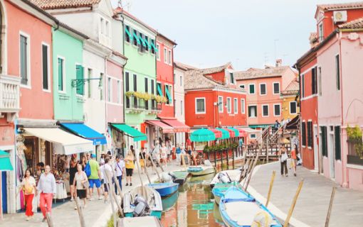 当地人曾以打渔为生,为了方便离家的男人能轻易找到房子,主妇将房子刷得色彩斑斓,因此这里也被称作彩色岛。岛上的手工蕾丝、抽纱制品、彩绘玻璃等,都是威尼斯闻名遐迩的特色手工艺品。花边装饰艺术博物馆非常值得去参观。这里曾是著名的玛格丽特王妃蕾丝学校,蕾丝制作工艺在此得以传授流传。布拉诺岛充满了艺术气息,家家户户的窗户上都装饰着鲜花和样式不同的精美蕾丝,五彩的房屋倒映在河道中,仿佛童话版的威尼斯小岛。