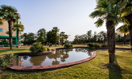 酒店周围环绕着园景花园,高尔夫球场和室外游泳池,酒店拥有前沿的建筑风格和现代化的室内设计,房间配有现代或古典的装饰家居,客房均享有花园、游泳池或高尔夫球场的景致。此外,酒店设有多个餐厅,为您提供国际风味的精致菜肴和传统的意式美食;酒店环境宁静,轻松满足您的多样需求,都将成为您放松身心的理想之选。