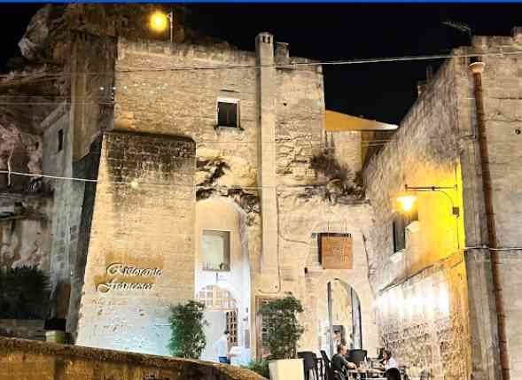 马泰拉Sassi 老城区(Sassi di Matera)中的特色洞穴餐厅多改建自原始洞穴民宅或粮仓,保留天然石壁、拱形结构与昏黄灯光,分为两个区域——Sasso Caveoso 和 Sasso Barisano。其建筑由天然岩石雕凿而成,自古便有人居住,是地球上最古老的居住地之一。特色洞穴餐厅菜色常见包括手工意面配酱汁(如Orecchiette)、山羊乳酪、烤蔬菜、豆泥、乡村面包、地区葡萄酒(如Aglianico)或自制甜点。