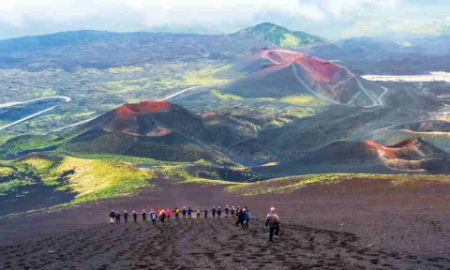 您将乘坐缆车上升至2500米,然后乘坐四驱车上升至2800米。从这里开始步行至3000米。可以观察到顶部火山口,然后我们将停在侧面火山口(Barbagallo,约2900米)。您将欣赏近期的熔岩流,直到您到达熔岩通道的内部。我们将参观一个溢出的火山口(2002年喷发),然后从这里步行下山,沿着沙洲到达缆车站,从那里我们将观察Bove山谷,在晴朗的日子里欣赏从爱奥尼亚海岸到西西里岛内部的美景。