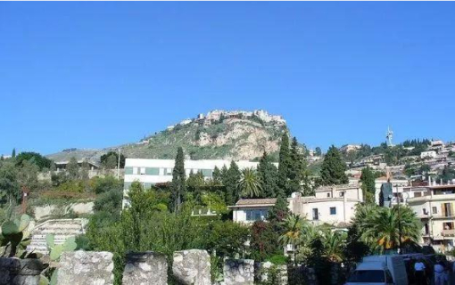 陶尔米纳城市海拔最高处,是城堡山,也就是常看到的Castelmola,沿铺筑良好的道路上山需步行1小时,也可以搭乘公交车或者露天观光车上去,路上本身就是一路游览,到了山上之后可以游览一座废弃的城堡,并俯瞰全城,看看陶尔米纳的全景~