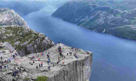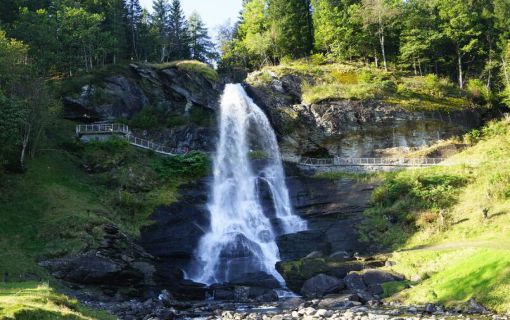 挪威出名的瀑布区,位于诺海姆桑德(Norheimsund)的大瀑布从近乎垂直的山坡浩浩荡荡奔腾而下,大自然爱好者可以在哈当厄尔峡湾获得无穷乐趣。这里峡湾和瀑布的雄浑壮美,有多个观光游览行程可供选择,您可在峡湾四周徒步远足,或是乘坐皮艇,从全新的角度探索峡湾。当地其他深受人们青睐的活动还有垂钓、漂流和骑行。 山路是不容错过的景点。山路沿着陡峭的山坡蜿蜒而上,瀑布飞流其间,每年5、6月份的时候尤为壮观。哈当厄尔峡湾必去景点,这座瀑布的独特之处是旅行者可以从后面穿过瀑布,身上却一点都不被打湿。