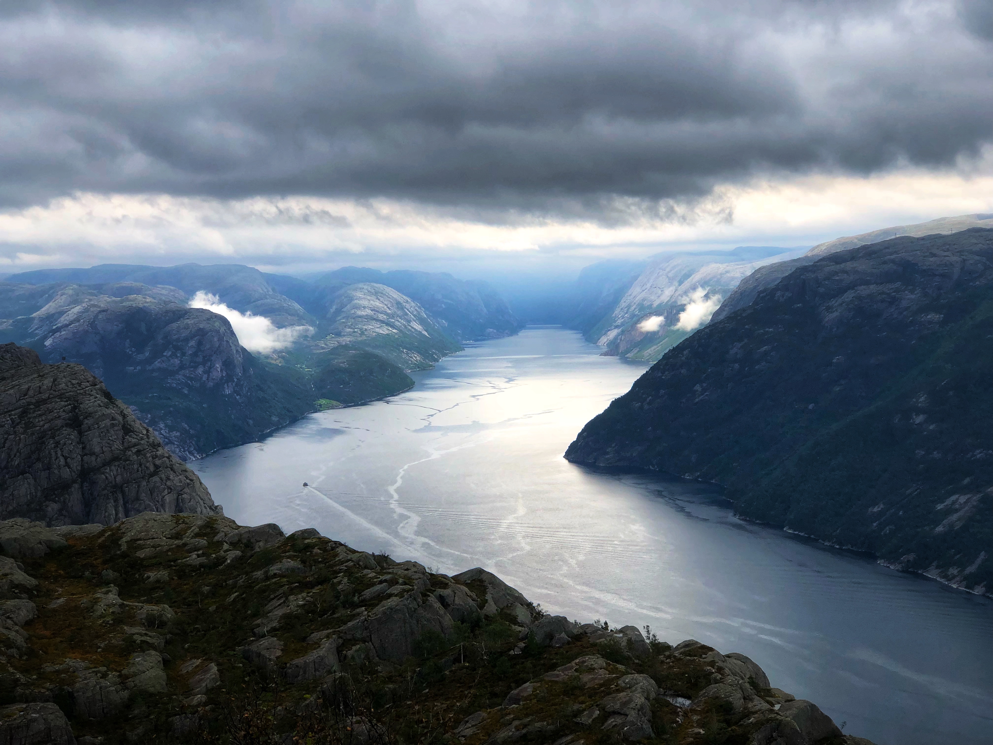 航行在峡湾山谷之间,天气瞬间万变,沿途高崖绝壁,迎面而至,两岸湖光山色应接不暇。风景异常雄伟。一般峡湾的明信片照片,都取之于此;松恩峡湾曾经发生一段真实的爱情故事,一个美国男孩爱上了一个挪威峡湾美女,他们在峡湾对面的山上成家立业,自给自足,后来爬上山的梯子没有了,他们每次下山就自己攀爬下来,不用梯子。现在这个房子也还一直存在,如果你想去入住的话,不仅你得自己攀岩上去,而且生意还很好,要提前很久预约才能住得上呢!