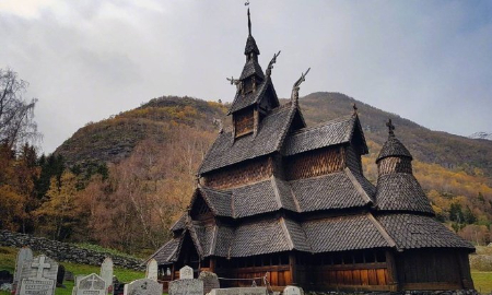 海达尔木板教堂是一座三层木制建筑,建于13世纪初,是挪威最大的木板教堂,它不仅是中世纪建筑的杰作,也是至今还被泰勒马克郡(Telemark)诺托登(Notodden)地区教会使用的教堂。在外部通道的墙壁上刻着古日耳曼字母,表明这座教堂是为圣母玛利亚建造的。