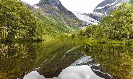 早餐后来到欧洲大陆最大冰川约斯特谷冰川(Jostedalsbreen)的分支【博雅布林冰川】(Bøyabreen Glacier),悬挂在陡峭的山壁上。最高点海拔1700米,与最低点之间有1400米的落差。终年冰封的高山积雪经重力的压力,形成如同河川般冰雪蓝色结晶的地理景观。之后游览附近的【冰川博物馆】,被认为是建筑师利用景观而非借助外来物的典范。众口交誉的建筑本身,曾获数项大奖包括挪威建筑学最高A.C.HouensFund金奖。博物馆通体灰色,设计中充分考虑了地形、地貌和季节因素,如北欧的光线、灰色的石头、苍翠的森林等,将现实和虚幻协调一致,创造出堪称时代经典的作品。之后前往奥勒松,奥勒松坐落在挪威默勒一鲁姆斯达尔郡的三个岛屿上,是通往盖朗厄尔峡湾的入口。游览海滨小镇【奥勒松Alesund】,夜宿峡湾小镇酒店。