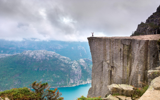 布道石地处挪威南部,靠近斯塔万格市的吕瑟峡湾中部,是一块天然形成的巨石,突兀地直立于峡湾深处的崇山峻岭中,垂直落差604米,顶部有大约625平方米的平台。走到近处,站在布道石平台上,俯瞰峡谷中的吕瑟峡湾(Lysefjord),那样的风景,真的不仅仅是壮丽可以形容。起伏的山峦、蜿蜒的峡湾,以及峡湾中漂浮着的游船……缓缓为你展开一幅风景长卷。