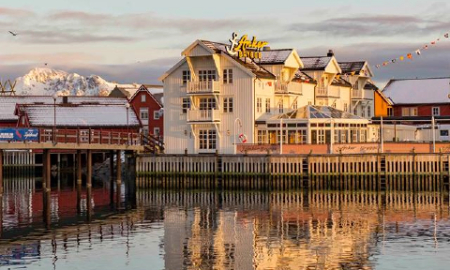位于斯沃尔韦尔市中心码头的安克尔布里嘉酒店,凭借古典之美和特色的渔村文化成为五星级古典酒店,这所著名的挪威传统渔村水木屋酒店,所有房间都沉重的历史感,酒店享有壮丽的山景和海景,风景如画,非常适合拍照,还时有海鸥来串门。内部古色古香原木装潢,古董厨具做装饰,温馨,酒店的餐厅和码头酒吧是镇上最受欢迎餐厅,提供丰盛的早餐,美味罗弗敦当地传统的菜肴。