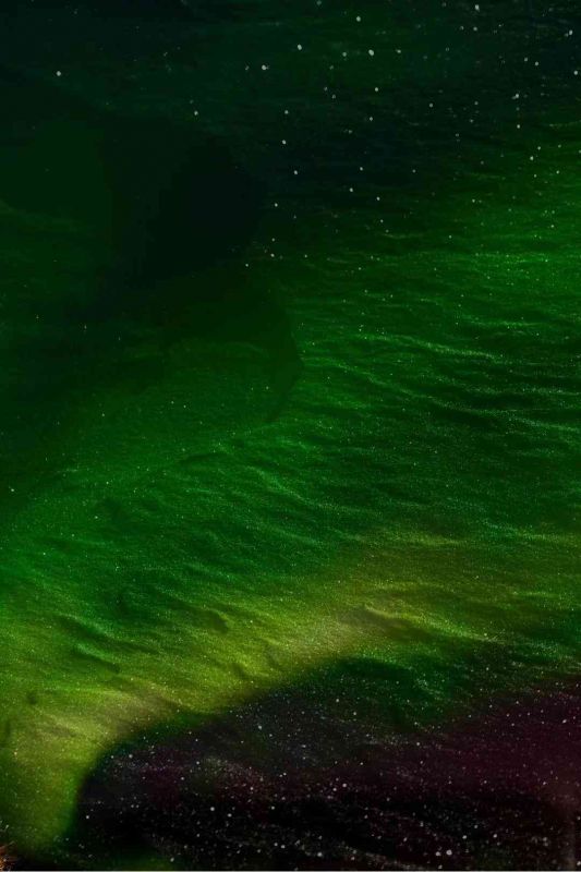 极光第一天就看到了,但是这个拍摄流光,这个完全做不到呀。曝光时间要长,光圈还要大,极光倒影在流动的海面上,折腾了一晚上,还是这样的。