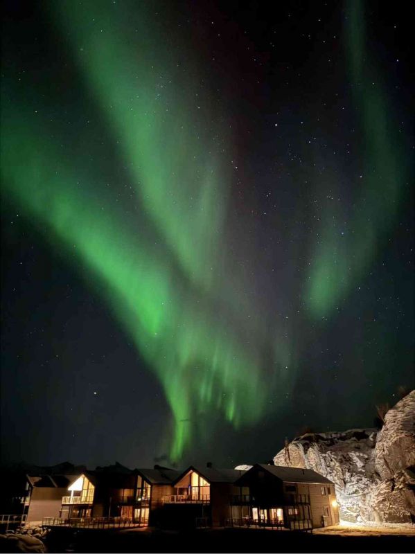 罗浮顿的水屋酒店,在极光下格外炫耀,特别是极光倒影在海面上,如同流动的荧光笔,我现在知道《流光》是什么样子的,我们的导游沙老师是奥斯陆大学的教授,圣诞期间来带团,奥斯陆大学跟我们学校有合作交流项目,也算半个我们的老师。