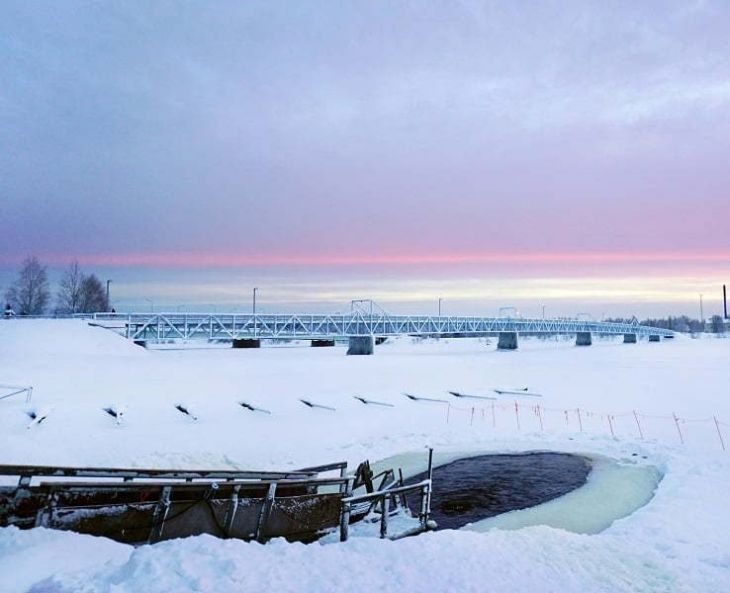 建于1958年的特罗姆瑟大桥是北极内壮观的建筑,横跨特罗姆索伊岛和特罗姆斯达伦镇,是特罗姆瑟的标志性建筑,跨海大桥的一侧是雪山峰式外形别致鲜明雪山小镇,许多关于特罗姆瑟的明信片都是在此拍摄。
