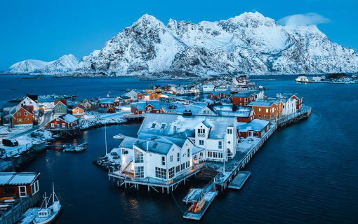 早餐后,首先前往莱肯奈斯(Leknes),这里有罗浮顿海洋养殖中心,也是罗浮顿的商业中心,随后前往欧洲公路的尽头,世界上最短的名称的城市(å),却被无数摄影师喜爱的奥镇游览拍摄,随后出发前往雷纳(Reine)俯揽雷讷山壮丽景色;前往挪威标志红房子小镇-哈姆诺伊(Hamnoy),之后前往亨宁斯韦尔(Henningsvær)小镇,参观修建在岩石上的小岛足球场。随后返回斯沃尔维尔传统渔村 (Svalvaer)夜宿安克尔布里嘉酒店或同等五星级酒店