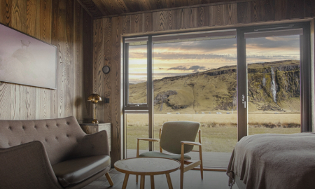 位于塞里雅兰瀑布的冰岛地平线酒店设施和服务都是高水平的旷野酒店,作为北欧现代设计风的实践者,酒店房间的内饰审美和细节处理提供舒适的住宿环境,大型落地窗外是瀑布景观与艾雅法拉火山、雪山与冰川的相容,透过星空与荒野与极光对话。
