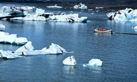 杰古沙龙冰河湖由瓦特纳冰川(Vatnajokull)融化形成,湖中布满了各种形状和大小的冰山。从四面八方看去,这世外桃源般的环境都令人叹为观止,周围是形状和结构各异的蓝色冰山,前方是冰川雕刻而成的冰舌。在冰湖中畅游时,注意留心湖中的海豹。杰古沙龙冰河湖就是这些小生物的家园,海豹在水中嬉戏、在冰块上晒太阳的场景都十分温馨可爱。乘船畅游美丽非凡的杰古沙龙冰河湖(Jökulsárlón glacier lagoon),在巨型冰块间穿梭,饱览冰湖闻名遐迩的冰之胜景,体验一个冰的世界。船上的英文导游将会详细讲解冰湖地区的相关知识,介绍其历史与未来发展。还有机会品尝冰湖中承载了千年岁月的冰块,收获难忘的独特体验。