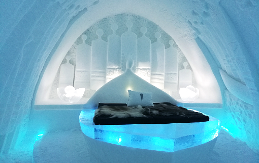 被评为《一生中不可错过的体验酒店 TOP10》的瑞典Ice Hotel冰酒店不仅仅是一座冰雪雕砌的旅馆建筑,更是一个恢宏奇幻的艺术设计作品。雕刻家们把冰块切割打磨成室内的家俱、装饰品、窗户、门、横梁、灯或者其他的冰雕作品,冰旅馆将设有60-80间风格不同的冰客房,宽敞漂亮的客房内,除了大冰床外还有盖着驯鹿皮的冰沙发、冰茶几、冰桌子和各种冰雕及冰的墙饰,衬着各色灯光精致如梦,每个套房都由来自世界各地的艺术家精心设计,主题和装饰都不一样,为游客提供梦幻般的住宿体验。不仅如此,游客还可以在纯洁晶莹的冰教堂举行意义非凡的婚礼。