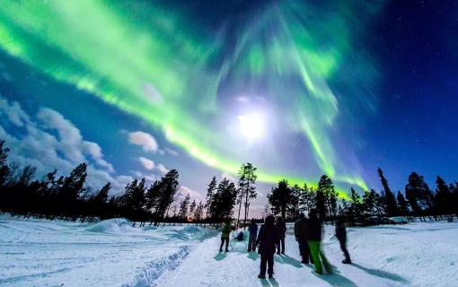 精品小团,乘车前往罗瓦涅米郊外原始森林,穿越雪野森林,等待极光。根据极光强烈,多次更新观测地点,最大限度观测极光,邂逅欧若拉。